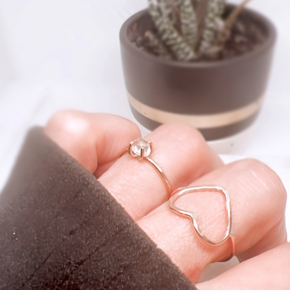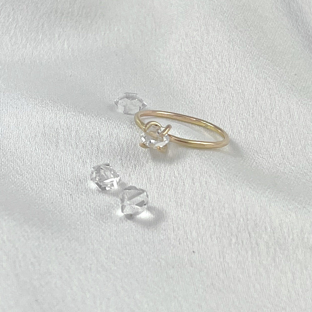 This handmade dainty ring featuring a dazzling Herkimer Diamond, nestled delicately in a setting of your choice: gold-filled or sterling silver.