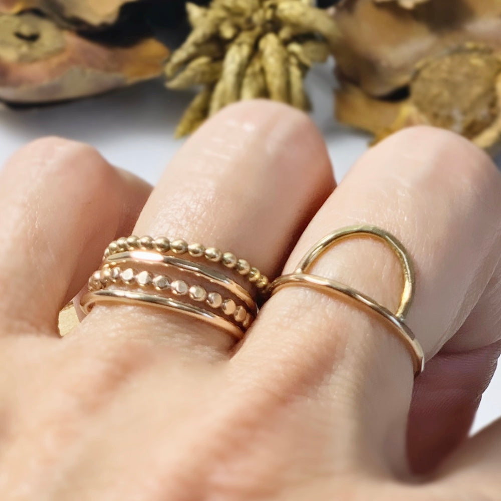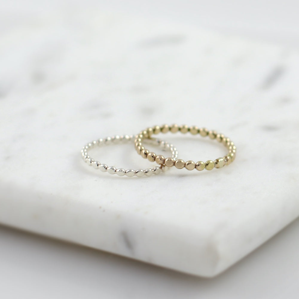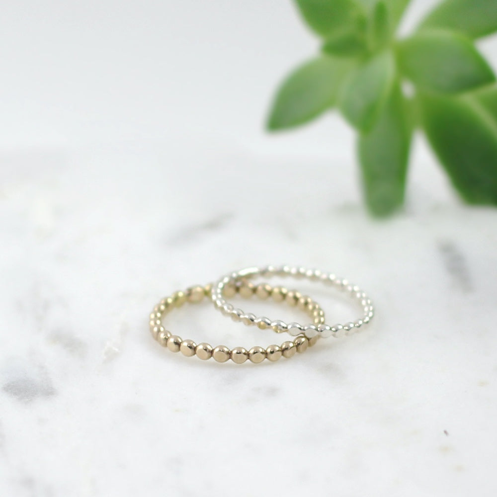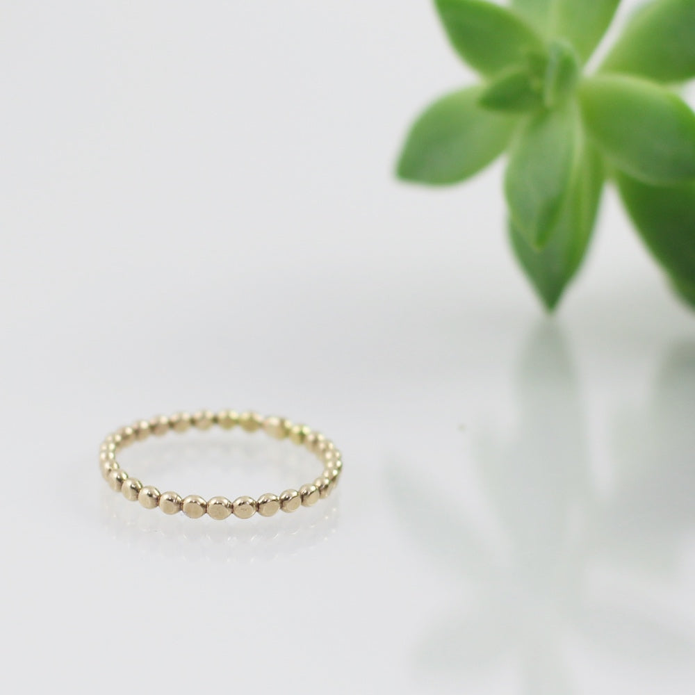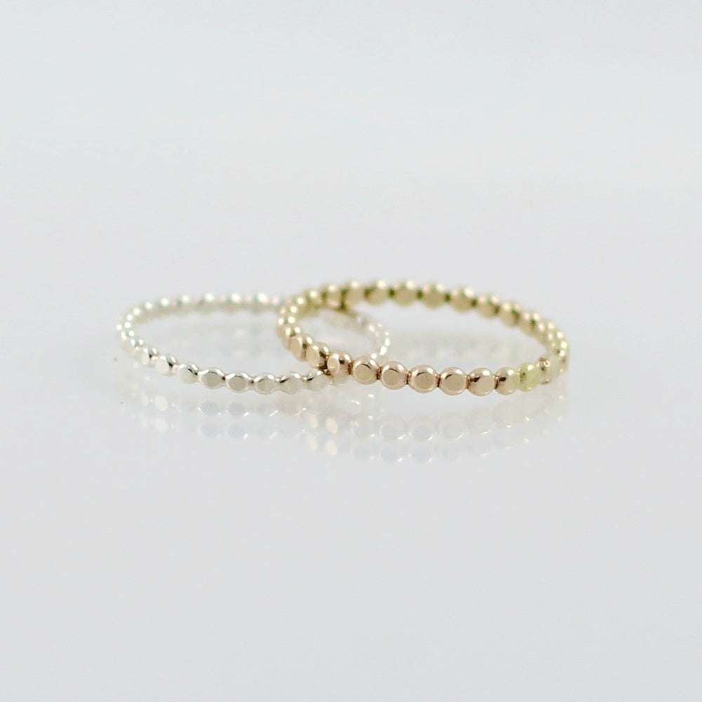 The dot stacking ring is perfect to be worn alone or mixed and matched with your favorite stackers. It is made to order in your size.