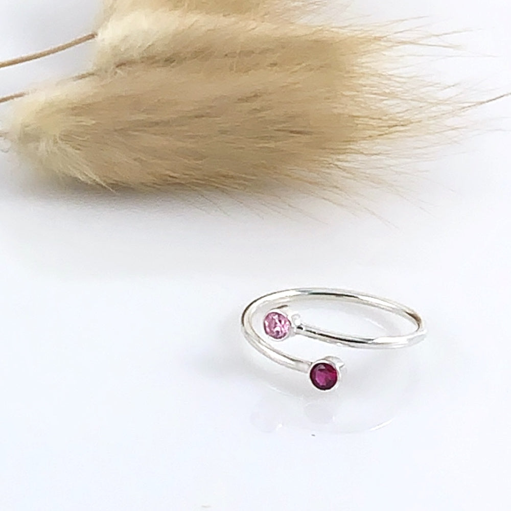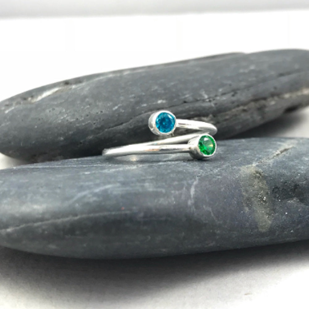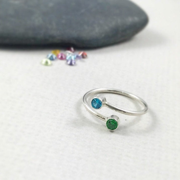 This beautiful sterling silver adjustable dual gemstone ring is great for mother's day! It is also a perfect ring for sisters, best friend, children, grandchildren, birthstone ring for couples.