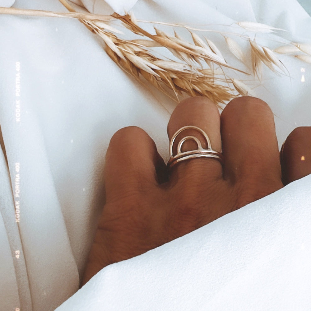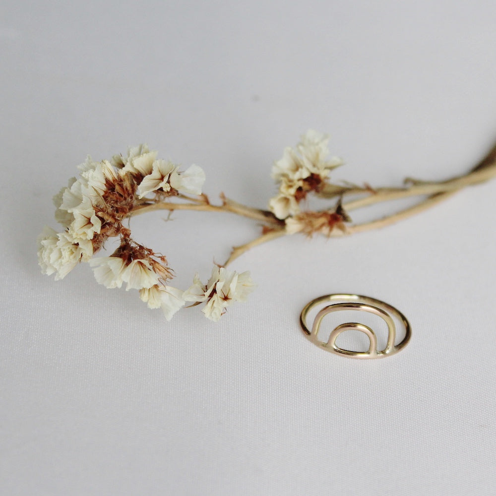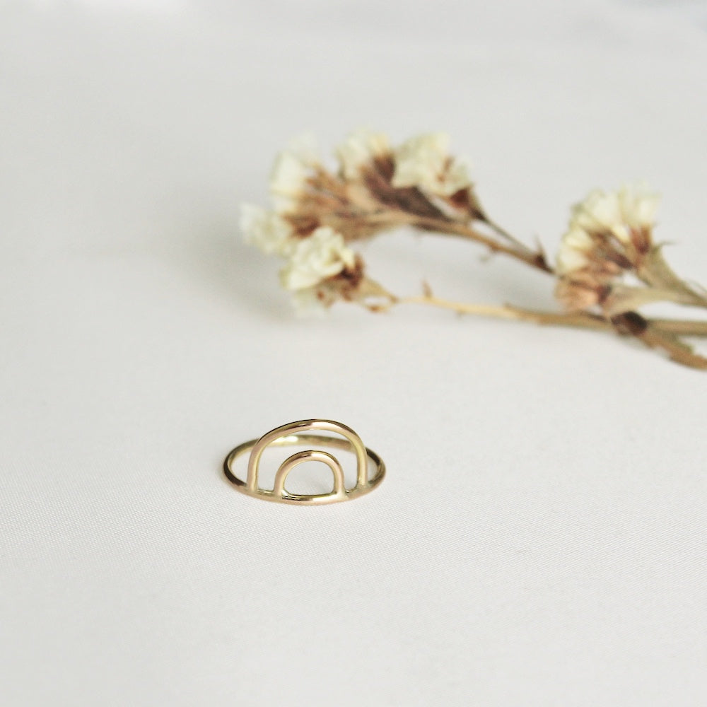 Handmade dainty but sturdy double arch rainbow ring. Hammered or smooth finish. It is made to order in your size.