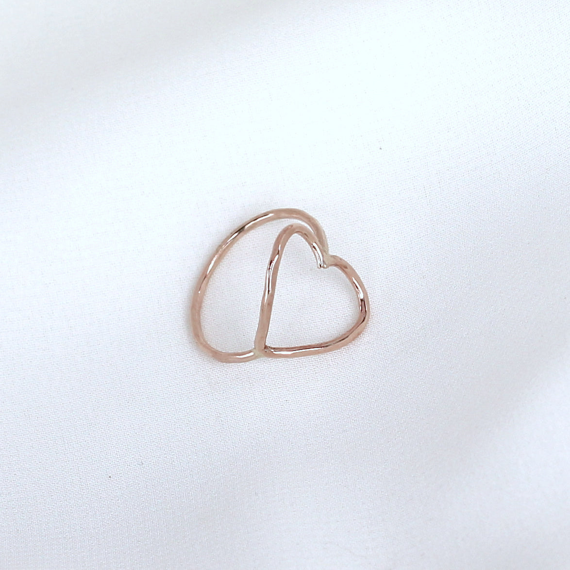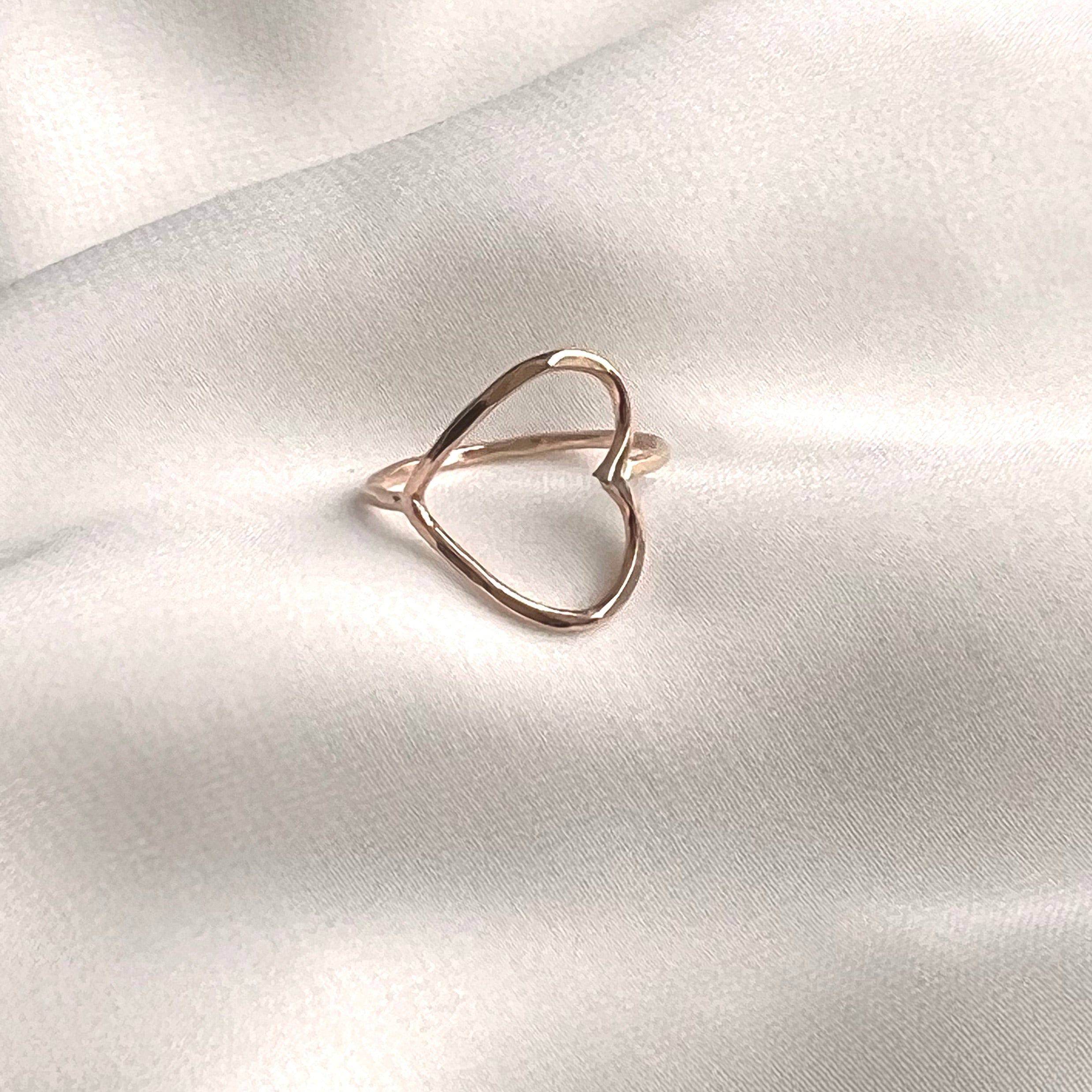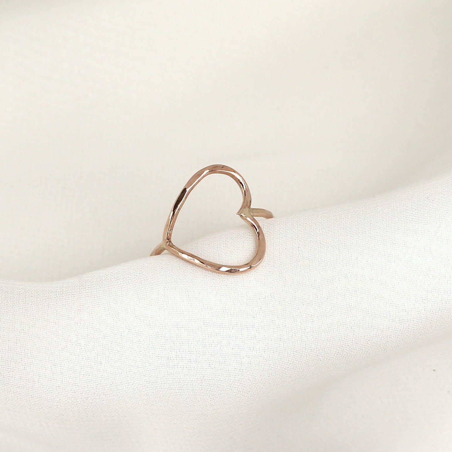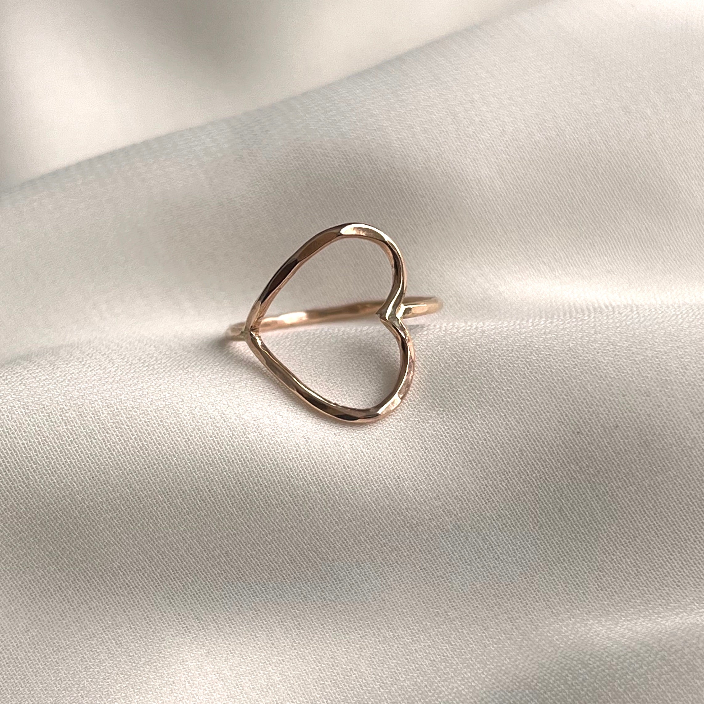 This open heart ring has been formed, forged, and soldered by hand with a 1.3mm gold filled wire. When finished is polished and tumbled for hours for maximum strength and durability. Comes in a ring box ready to give as a gift.