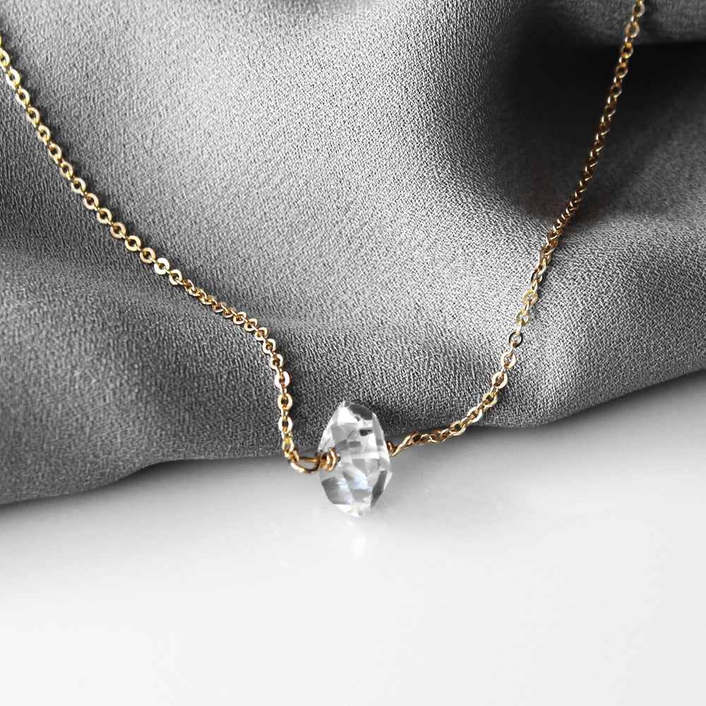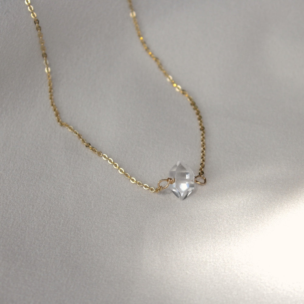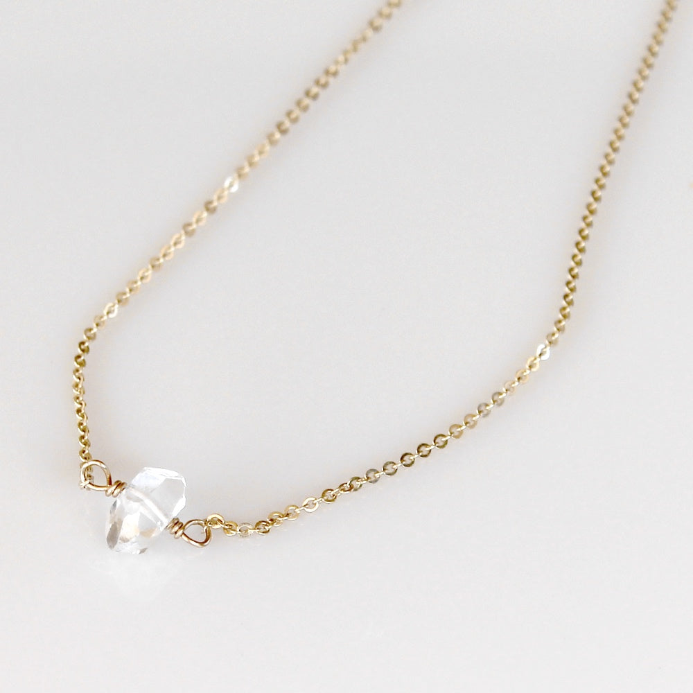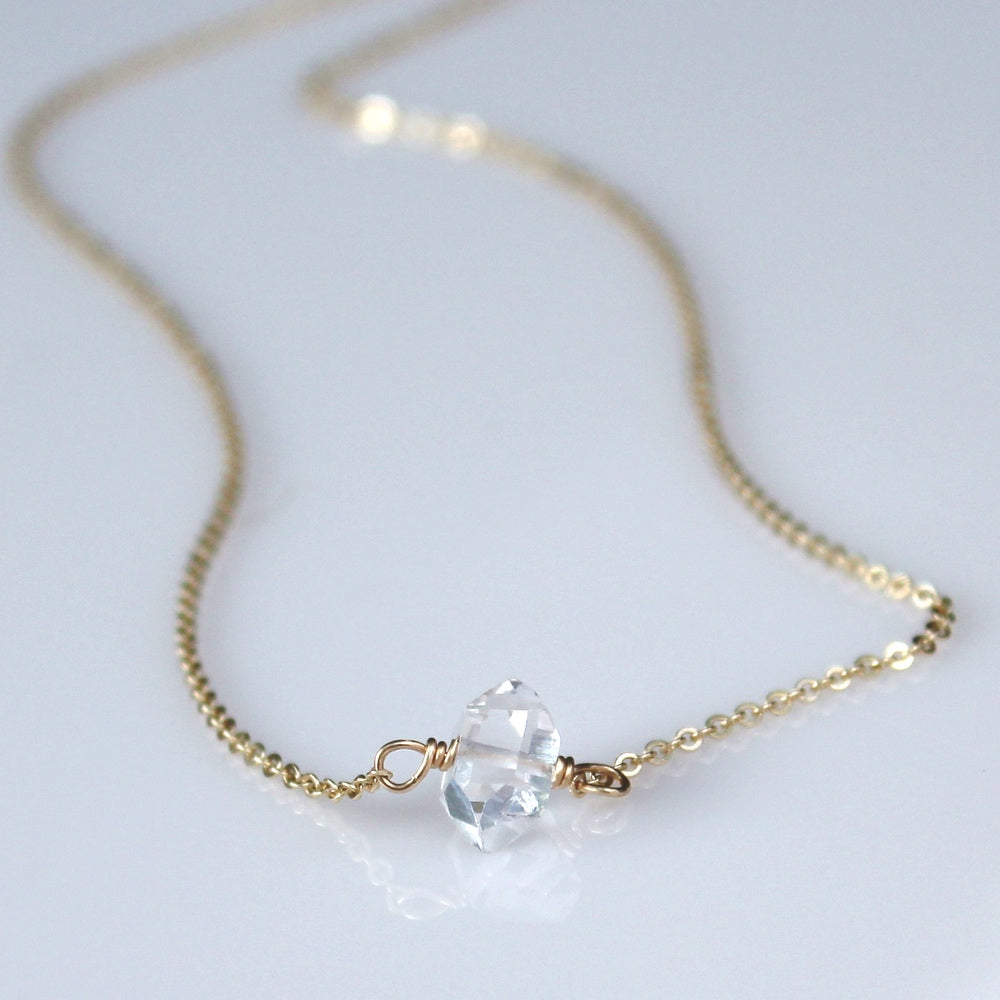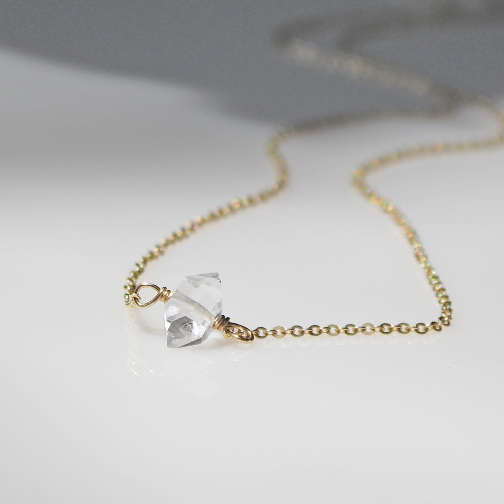 Herkimer Diamond necklace is perfect for layering. Available in 14 kGold filled and Sterling Silver in custom length dainty chain.