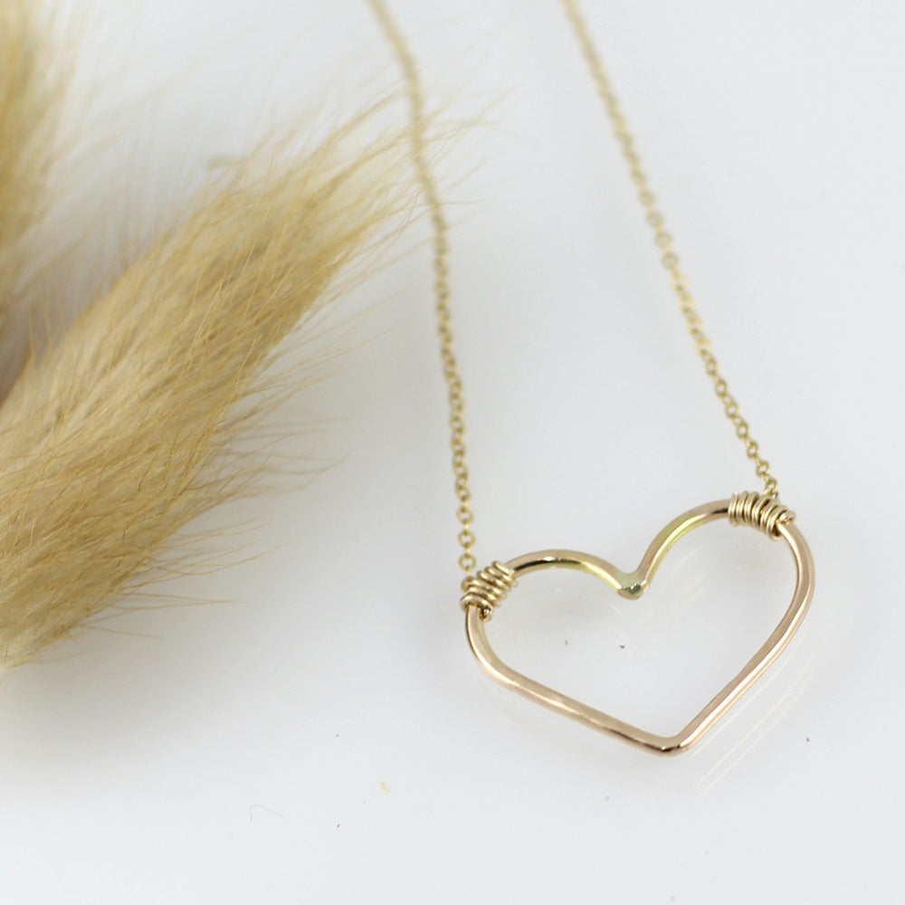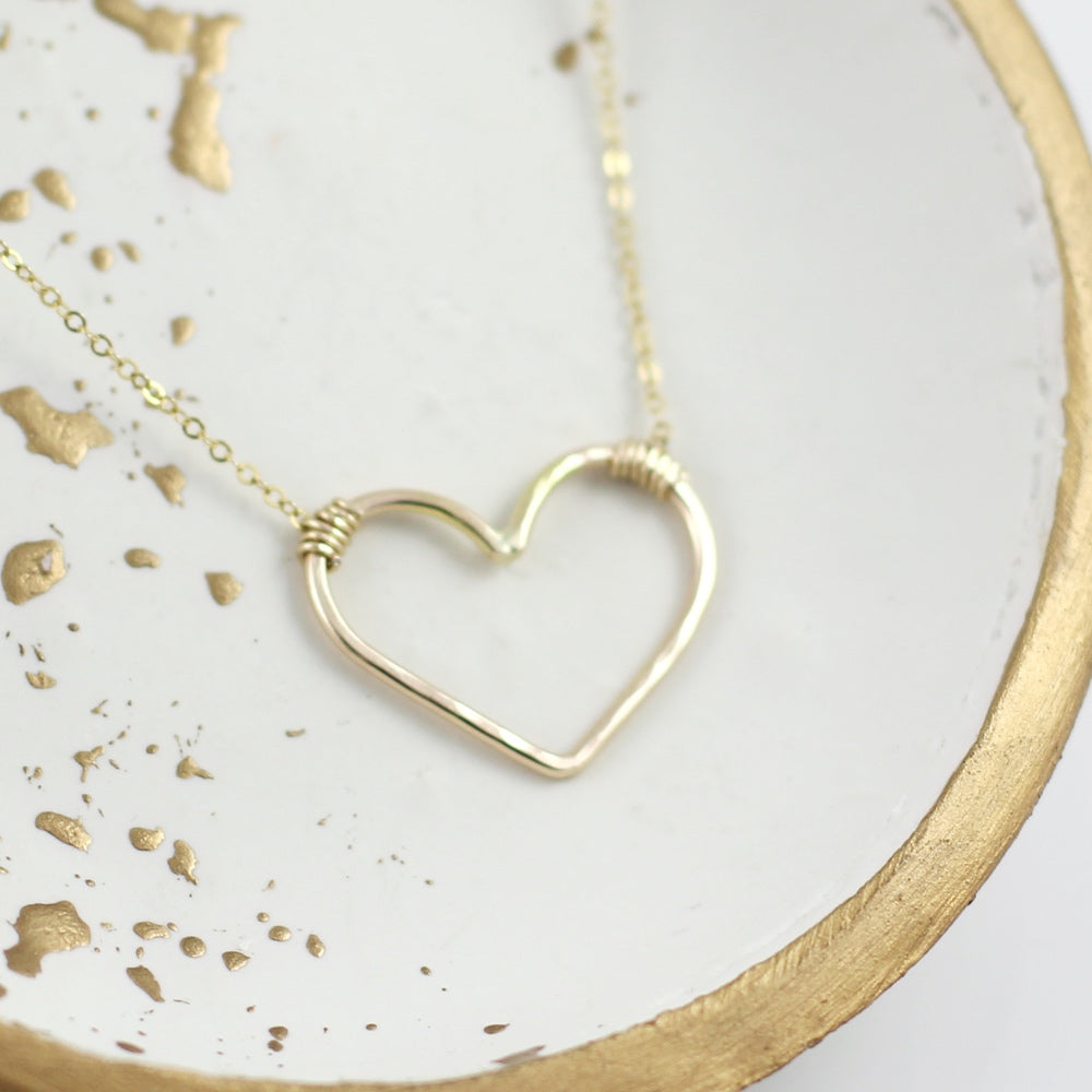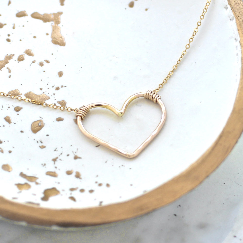 Delicate and simple open heart necklace. Small hand forged heart pendant made out of your choice of metal 925 sterling silver or 14k gold filled.