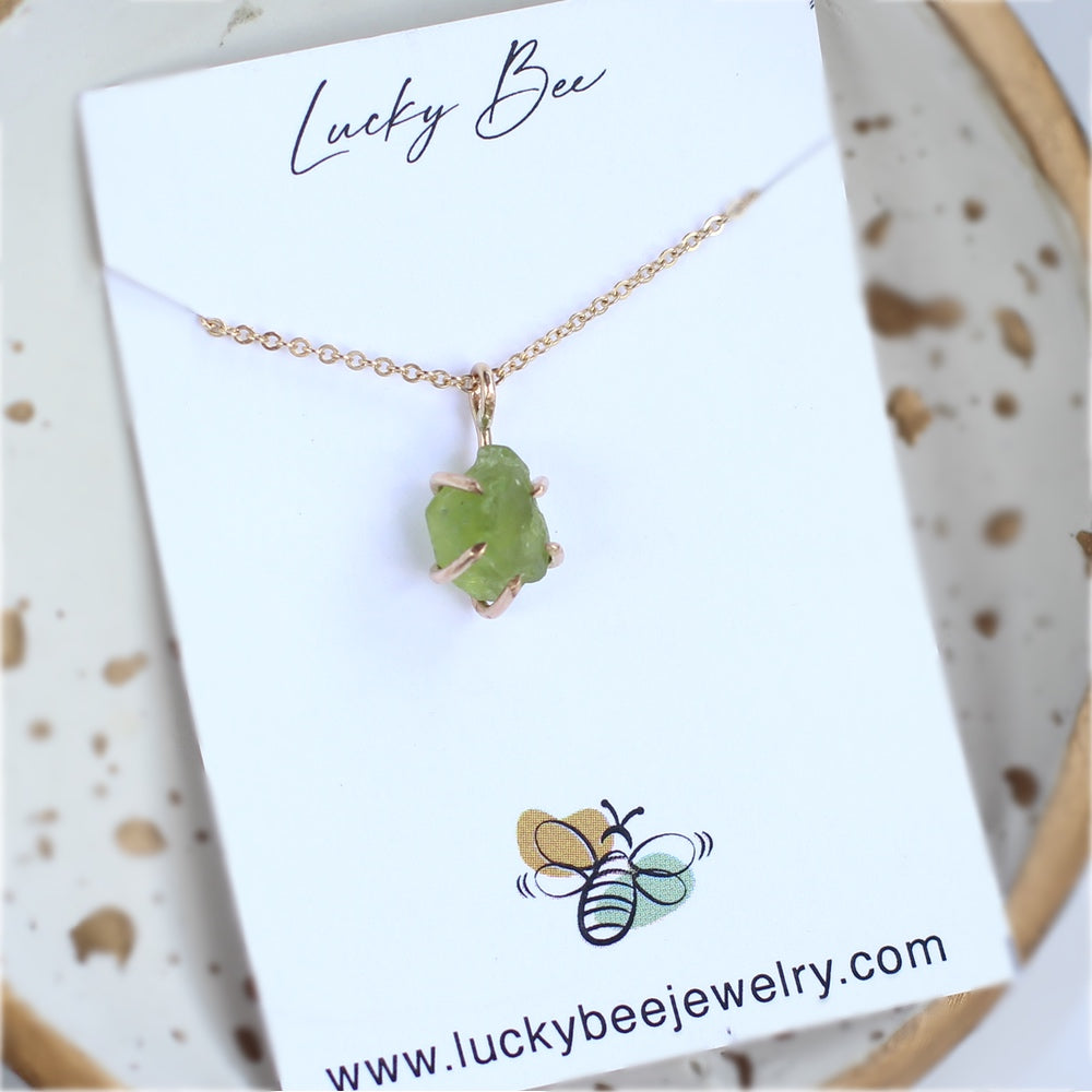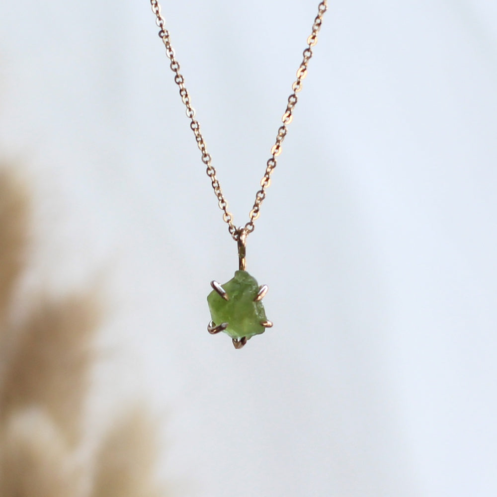 Peridot raw gemstone necklace in Gold Filled or Sterling Silver