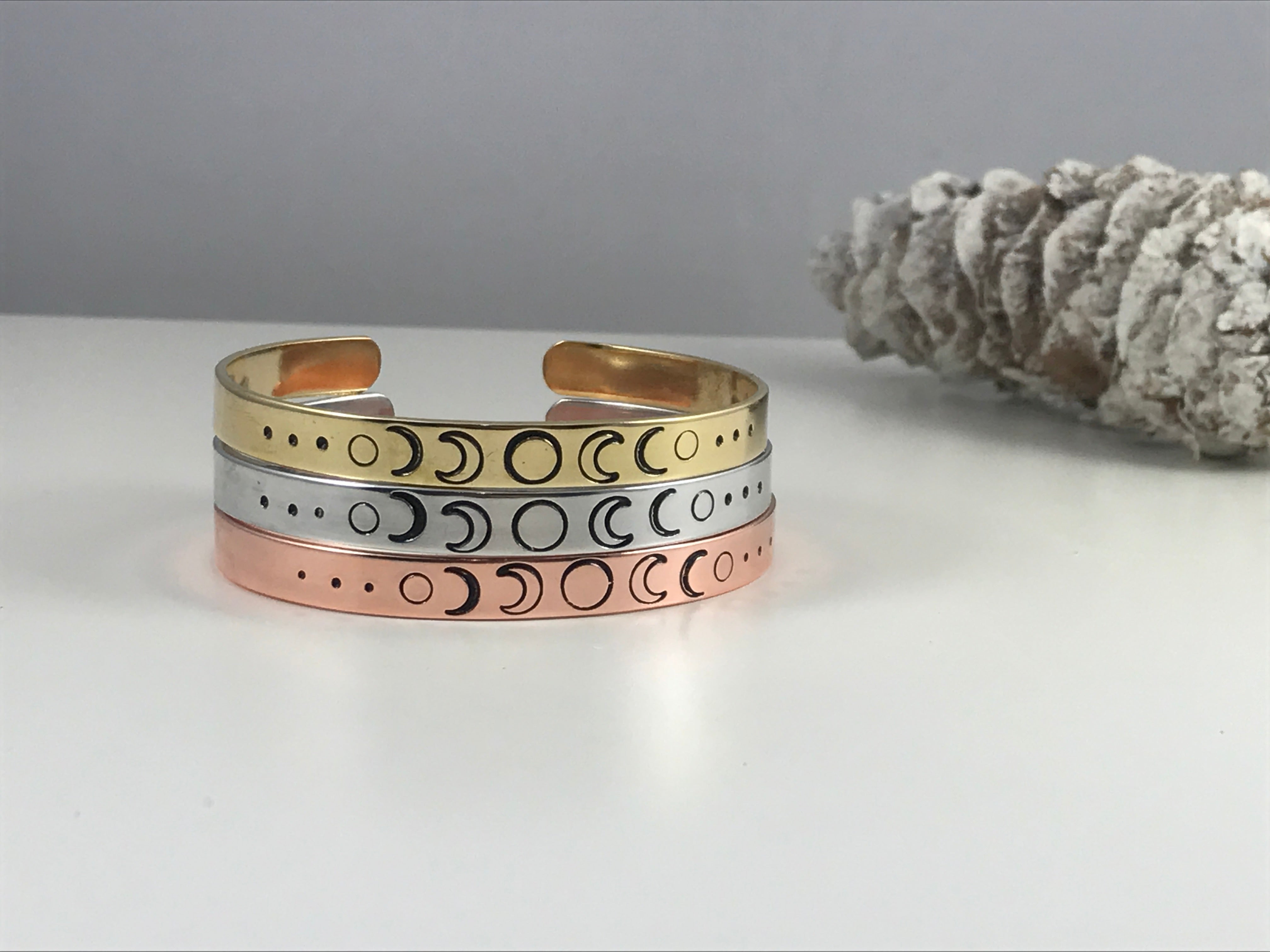 Moon Phase Cuff, Metal Bracelet, Hand Stamped Cuff, Yoga Bracelet, Moon Bracelet
