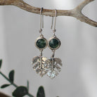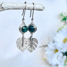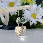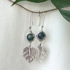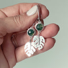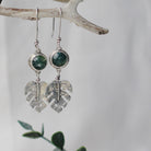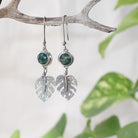Monstera Leaf Dangle Earrings with Moss Agate Stone