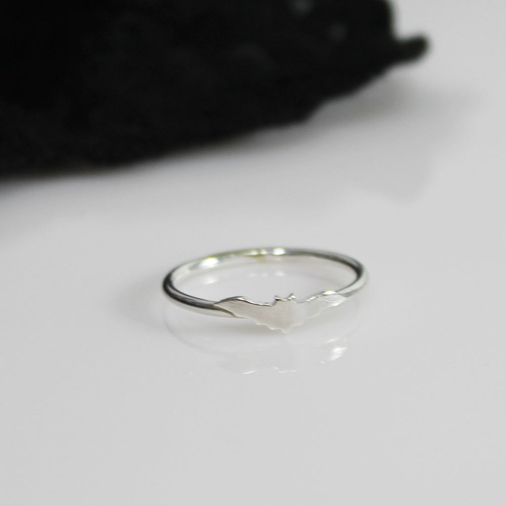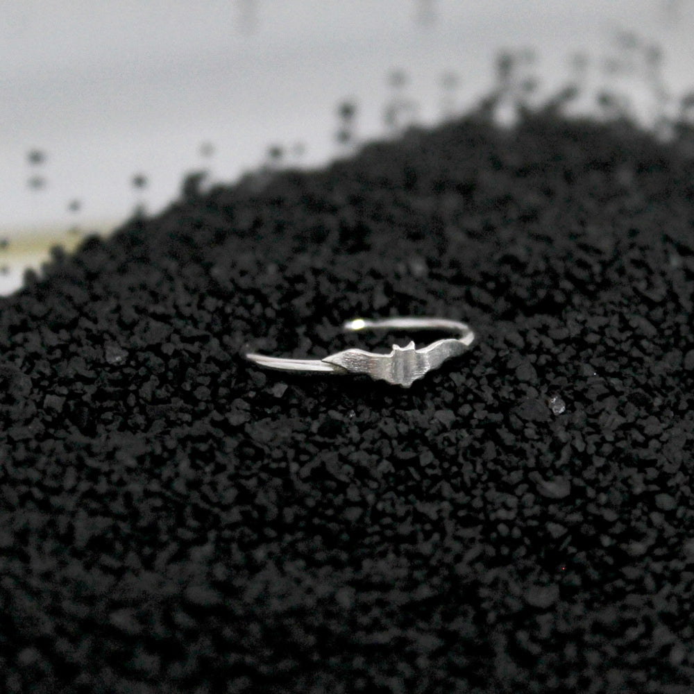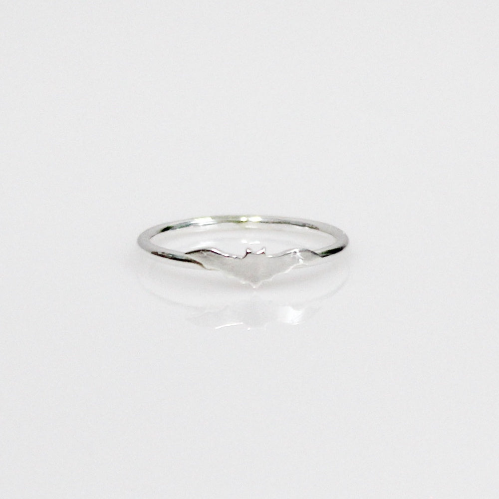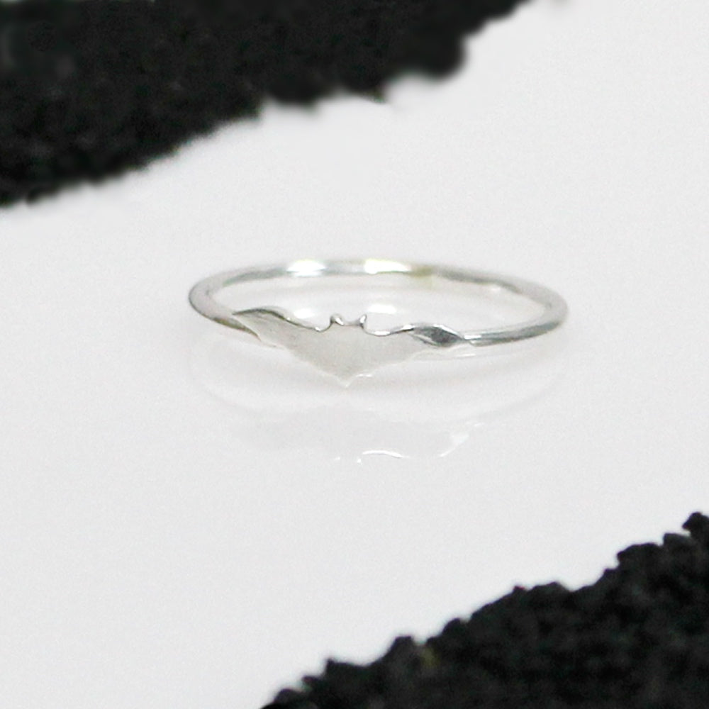 This cute little bat has been hand sawed and soldered onto a 1.3 sterling silver smooth band. It is a perfect halloween dainty accessory and for an everyday wear.